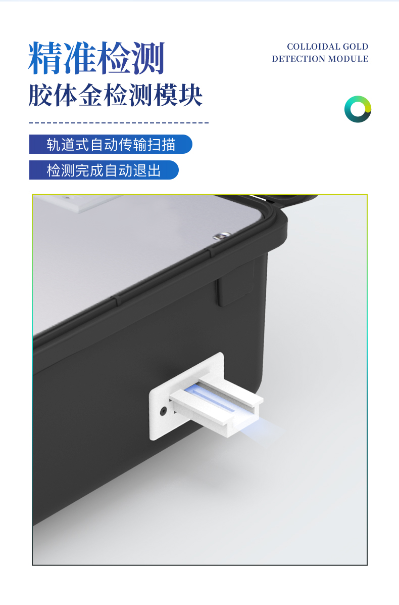 6、膠體金模塊檢測(cè)方式:軌道式自動(dòng)傳輸掃描,檢測(cè)完成后自動(dòng)退出檢測(cè)卡。