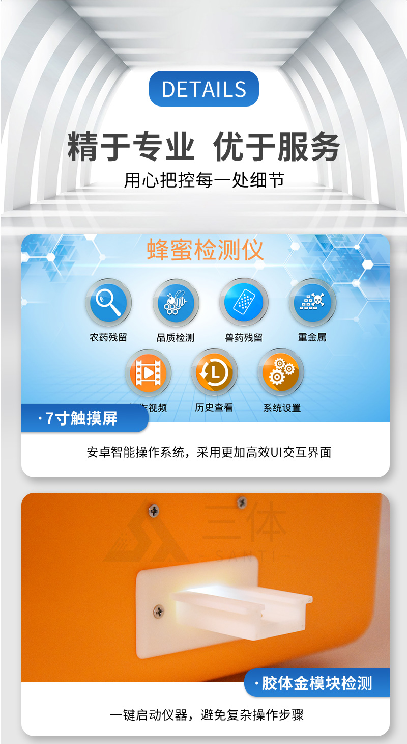 安卓智能操作系統(tǒng),采用更加**UI交互界面,儀器具有wifi聯(lián)網上傳、4G聯(lián)網傳輸、GPRS無線遠傳、網線連接功能,快速批量上傳數(shù)據。智能化程度高,儀器具有自檢功能:具有開機自檢和調零功能,具有自動檢測重復性功能。新一代高速熱敏打印機,檢測完成可自動打印或批量打印檢測報告和二維碼。儀器帶有監(jiān)管平臺,數(shù)據可局域網和互聯(lián)網數(shù)據上傳,檢測結果直接傳至食品安全監(jiān)管平臺。進行區(qū)域食品安全監(jiān)管及大數(shù)據分析處理與數(shù)據統(tǒng)計,檢測區(qū)域食品安全長短期動態(tài),達到食品安全問題預估、預警一體化主機,包含光電比色檢測模塊、膠體金免疫層析檢測模塊。一體化便攜式快檢設備,滿足現(xiàn)場及流動檢測使用需求,能夠在同一軟件下實現(xiàn)所有檢測項目的檢測,并可通過同一窗口直觀顯示檢測結果。膠體金模塊檢測方式:軌道式自動傳輸掃描,檢測完成后自動退出檢測卡。CT線自動識別,無需手動調整。儀器具有多品類多種類樣品菜單庫,可靈活選擇檢測樣品,不同的檢測通道可同時檢測不同的樣品項目。也可在儀器上直接編輯錄入樣品名稱、檢測指標、送檢單位等信息并保存進樣品數(shù)據庫。儀器內置操作視頻,是您身邊的化驗指導專家。樣品處理簡單省力,整體操作快速、安全、便捷。儀器具有自身保護功能,可設置用戶名及密碼,防止非工作人員操作等。高靈敏度,高檢測精度,高重復性精度,掃描式高精度光學傳感器。儀器具有重新校準、鎖定、恢復出廠設置功能。結果判定線可修改,對照值標定值可保存,斷電不丟失數(shù)據。兼容市場上所有的膠體金卡,使用耗材不受限制,極大增強用戶使用體驗。