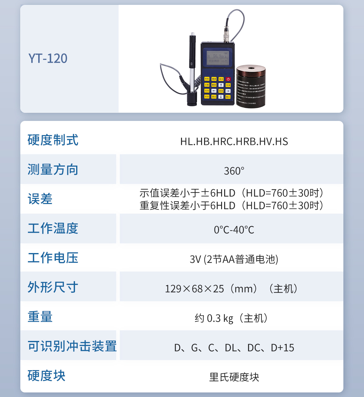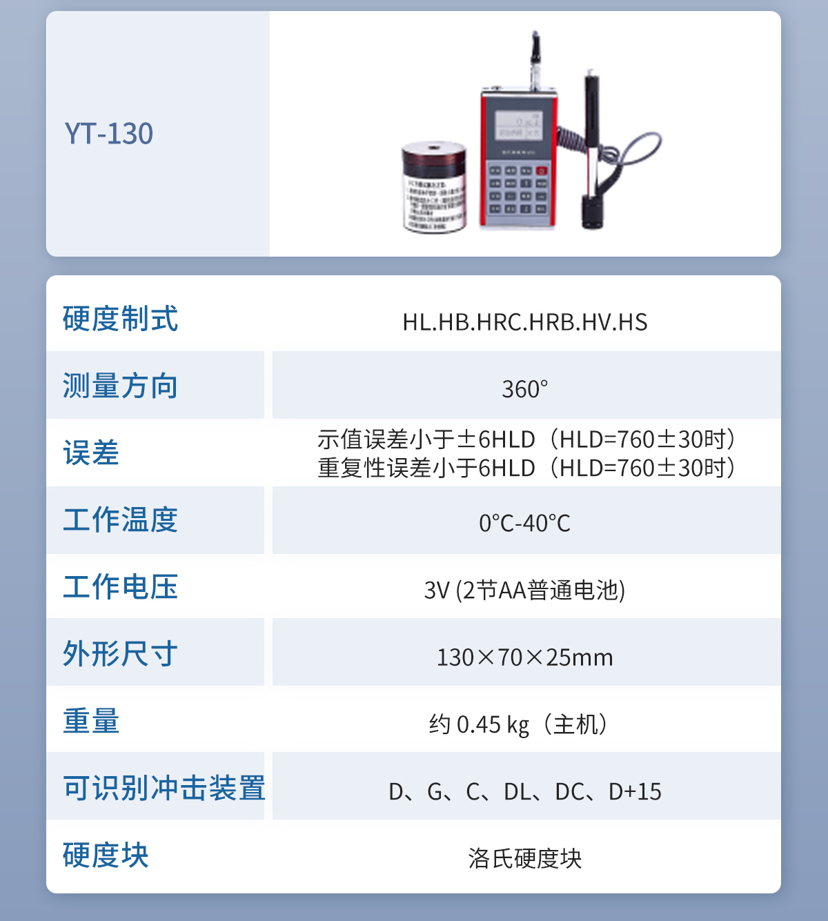 YT-130 里氏硬度計(jì)是我公司生產(chǎn)的多功能的硬度測(cè)量?jī)x器。使用全中文顯示,菜單式操作,操作簡(jiǎn)單、方便。本機(jī)可直接;顯示里氏、布氏、洛氏、維氏、肖氏等各種硬度值。儀器小巧、便攜、可靠性高,適用于惡劣的操作環(huán)境,抗振動(dòng)、沖擊和電磁干擾。
