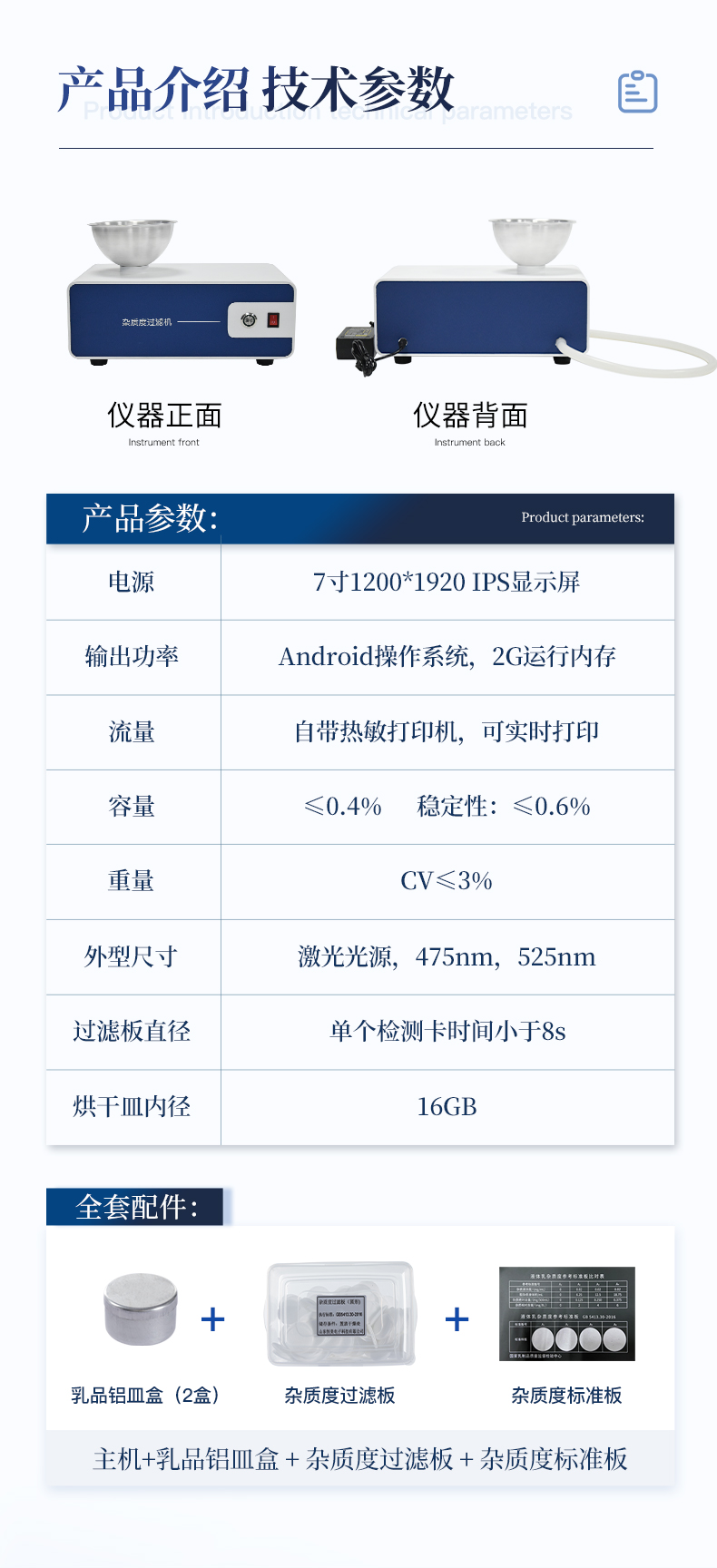 | 用途:用于乳及乳制品中雜質(zhì)度的測定。 | 標準依據(jù):符合國家標準 GB/T5413.1—5413.32,特別是 GB5413.30-2016 的要求。 |