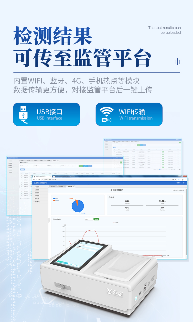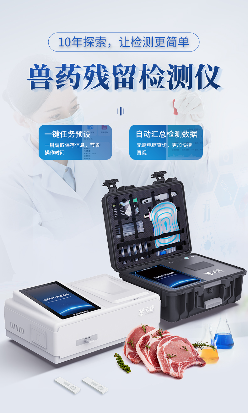 山東云唐智能科技有限公司生產(chǎn)的高智能食品安全檢測儀為集成化食品安全快速檢測分析設(shè)備,采用臺式一體化設(shè)計,可快速檢測200多種食品安全項目,包含非食用化學(xué)物質(zhì)、濫用食品添加劑、農(nóng)藥殘留、獸藥殘留、重金屬、病害肉、營養(yǎng)強(qiáng)化劑、抗生素類殘留、激素類殘留、真菌毒素類殘留、化學(xué)類殘留等項目的定性定量檢測。目前廣泛應(yīng)用于市場監(jiān)管局、檢測中心、衛(wèi)生監(jiān)督部門、農(nóng)業(yè)部門、院校及各單位食堂、食品肉產(chǎn)品深加工企業(yè)、商超市場、司法部門、餐飲機(jī)構(gòu)、養(yǎng)殖場、屠宰場、檢驗(yàn)檢疫部門等單位。