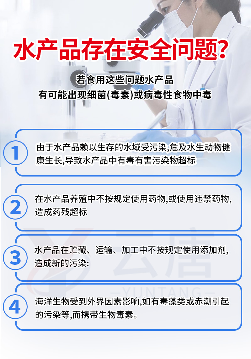 適用于魚、蝦等水產(chǎn)中孔雀石綠、氯霉素、硝基呋喃類:呋喃唑酮(AOZ)、呋喃它酮( AMOZ )、呋喃妥因(AHD)、呋喃西林(SEM)、呋喃那斯、磺胺類、激素類、四環(huán)素類、金霉素、土霉素、甲砜霉素、氟苯尼考、喹諾酮類藥物:噁喹酸、諾氟沙星、恩諾沙星、環(huán)丙沙星、氧氟沙星的定性定量檢測。