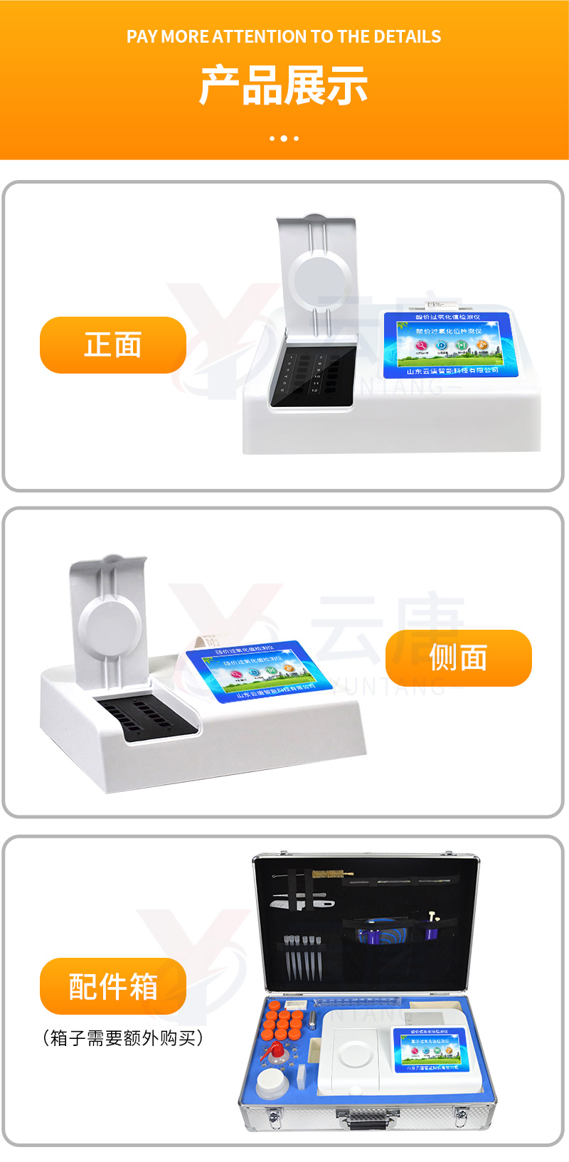 | 儀器采用臺式一體化系統(tǒng)檢測技術(shù),將分光光度模塊、新型農(nóng)殘檢測模塊、數(shù)字化管理模塊、無線通訊模塊高度集成于一體,支持檢測200種食品安全檢測項(xiàng)目,同時(shí)預(yù)留升級檢測方法。 | 儀器檢測模塊標(biāo)準(zhǔn)化、智能化,可隨意自由組合。檢測箱體內(nèi)置多個(gè)標(biāo)準(zhǔn)檢測單元,檢測模塊可以調(diào)整配置。 | 儀器采用全新安卓智能系統(tǒng),主控芯片采用 ARM Cortex-A7,RK3288/4核處理器,10.1寸高清液晶觸摸豎屏,更加**的UI交互界面,運(yùn)轉(zhuǎn)快捷;儀器配備無線通信模塊: 4G(APN)通訊模塊、Wifi模塊,藍(lán)牙傳輸,同時(shí)具有雙USB接口以及RJ45接口能以多種方式實(shí)現(xiàn)數(shù)據(jù)保存和數(shù)據(jù)傳輸功能。 | 創(chuàng)新檢測模式: | ★檢測通道:≥12通道;采用精密旋轉(zhuǎn)比色池設(shè)計(jì),使用同芯片同光源校準(zhǔn)精度,解決不同光源之間的誤差值。1-12通道間誤差0.1%。(***:**202022821055.2) | ★儀器具有自動(dòng)識別比色皿檢測功能,即:將樣品比色皿放入儀器后,點(diǎn)擊樣品檢測,儀器自動(dòng)識別比色皿進(jìn)行通道檢測。 | 進(jìn)口高精光源: | 高精度進(jìn)口四波長冷光源,通道配置 410、520、590、630nm 波長光源,一個(gè)光源芯片驅(qū)動(dòng)一個(gè)光源,誤差極小,每臺設(shè)備單獨(dú)**校準(zhǔn)光源,**比對,同時(shí)參照四種不同波段光源全方位覆蓋市面上99%的農(nóng)殘食品項(xiàng)目檢測。 | 智能化操作系統(tǒng): | 便捷操作系統(tǒng):設(shè)備檢測時(shí)可在同一檢測界面自動(dòng)對應(yīng)相關(guān)檢測通道一次性選擇1-12個(gè)樣品名稱,無須退出界面,節(jié)省操作時(shí)間。 | 數(shù)據(jù)集成系統(tǒng):設(shè)備首頁自動(dòng)統(tǒng)計(jì)檢測數(shù)據(jù)包含:周檢測數(shù)據(jù)、月檢測數(shù)據(jù),全部檢測總數(shù)量,均包含檢測總數(shù),合格數(shù),不合格數(shù),以及相關(guān)柱形分析圖,對各項(xiàng)檢測數(shù)據(jù)清晰掌握,無需電腦查詢,更加快捷直觀。 | 項(xiàng)目預(yù)設(shè)系統(tǒng):支持添加單個(gè)及多個(gè)相同或不相同的任務(wù)預(yù)設(shè),一鍵快速調(diào)取,每一個(gè)任務(wù)分別可以設(shè)置不同的樣品、批次、編號、來源、備注、抽樣信息、檢測信息、受檢信息、復(fù)核信息等更多信息。無縫鏈接平臺和APP實(shí)時(shí)查看下發(fā)任務(wù)。 | 數(shù)據(jù)監(jiān)管系統(tǒng):同步對接監(jiān)管平臺,數(shù)據(jù)可局域網(wǎng)和互聯(lián)網(wǎng)數(shù)據(jù)上傳,檢測結(jié)果可選擇直接傳至食品安全監(jiān)管平臺。集成OSS輸出存儲服務(wù)、區(qū)分設(shè)備定向管理應(yīng)用,進(jìn)行區(qū)域食品安全監(jiān)管及大數(shù)據(jù)分析處理與數(shù)據(jù)統(tǒng)計(jì),檢測區(qū)域食品安全長短期動(dòng)態(tài),達(dá)到食品安全問題預(yù)估、預(yù)警。 | 自定義打印系統(tǒng):內(nèi)置全新打印系統(tǒng),新創(chuàng)自定義打印方式,可按需靈活設(shè)置開啟或關(guān)閉:產(chǎn)品合格證(國家農(nóng)業(yè)部標(biāo)準(zhǔn)要求),二維碼,抽樣信息、檢測信息,受檢信息、復(fù)核信息、抽樣日期、檢測日期等信息的打印。 | 系統(tǒng)遠(yuǎn)程更新功能:可定向分客戶分儀器更新系統(tǒng),按照不同客戶后期實(shí)際需求添加項(xiàng)目,無需機(jī)器返廠,即可遠(yuǎn)程實(shí)時(shí)升級全新系統(tǒng),節(jié)省時(shí)間成本及避免運(yùn)輸造成設(shè)備損壞。 | 儀器主機(jī)采用一體化防水、抗壓、防撞擊、防腐蝕箱體設(shè)計(jì),同時(shí)配備交直流供電,可連接車載電源,可選配大容量充電鋰電池,滿足現(xiàn)場野外檢測需求。 | 安全證書,放心保障:儀器具有中國計(jì)量科學(xué)研究院校準(zhǔn)證書,權(quán)威認(rèn)證。 |