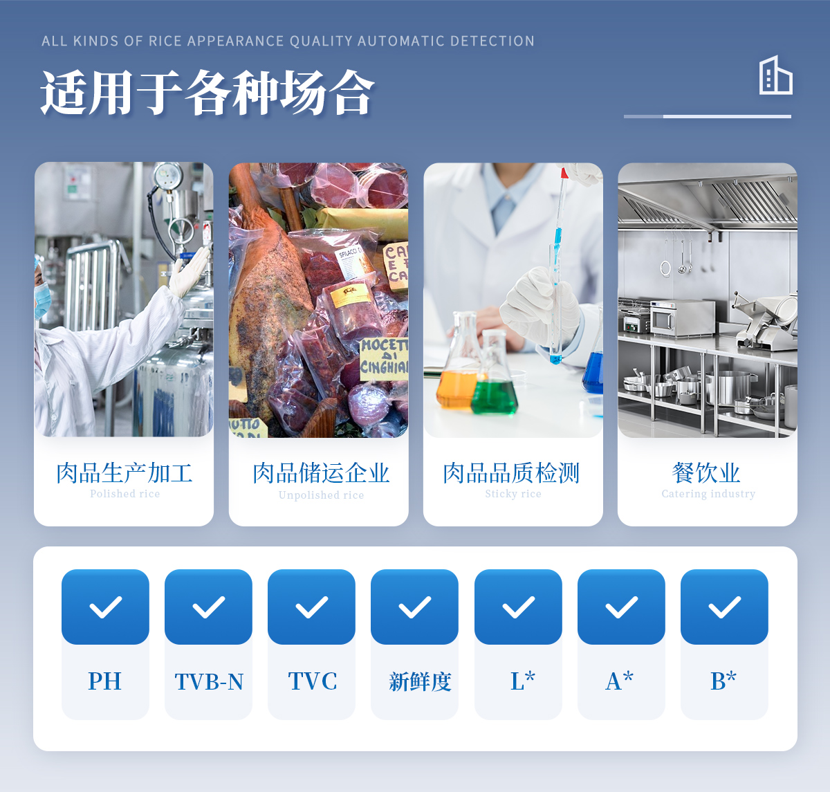 聯(lián)合中國農(nóng)業(yè)大學(xué)彭彥昆教授團隊研發(fā)的掌上式生鮮肉新鮮度分析儀,可用于檢測生鮮肉的TVC、pH、TVB-N、新鮮度、L*、A*、B*等評價指標。Palmarter具有體積小、便 于攜帶、性價比高等特點,其應(yīng)用場景包括但不限于肉儲運企業(yè)、肉品品質(zhì)監(jiān)管部門、飯店、超市、菜場、家庭等。