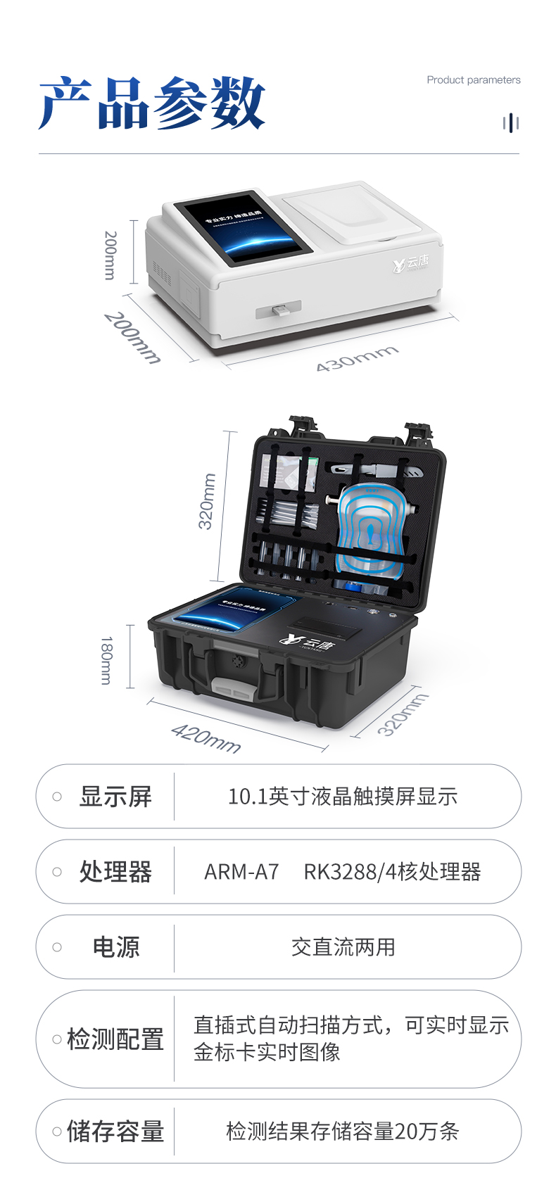 山東云唐智能科技有限公司生產(chǎn)的病害肉檢測儀為集成化食品安全快速檢測分析設(shè)備,采用臺式一體化設(shè)計,可對豬肉、牛肉、羊肉、魚類等存在的病害肉組胺、揮發(fā)性鹽基氮進(jìn)行快速定量檢測,儀器預(yù)留其他項目檢測程序和端口,根據(jù)日后需求可進(jìn)行升級