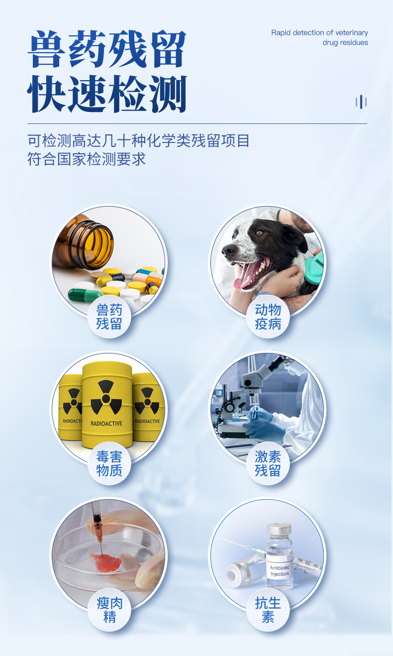 可快速檢測病害肉、組胺、揮發(fā)性鹽基氮,儀器預留其他項目檢測程序和端口,根據日后需求可方便的自主增加檢測項目。