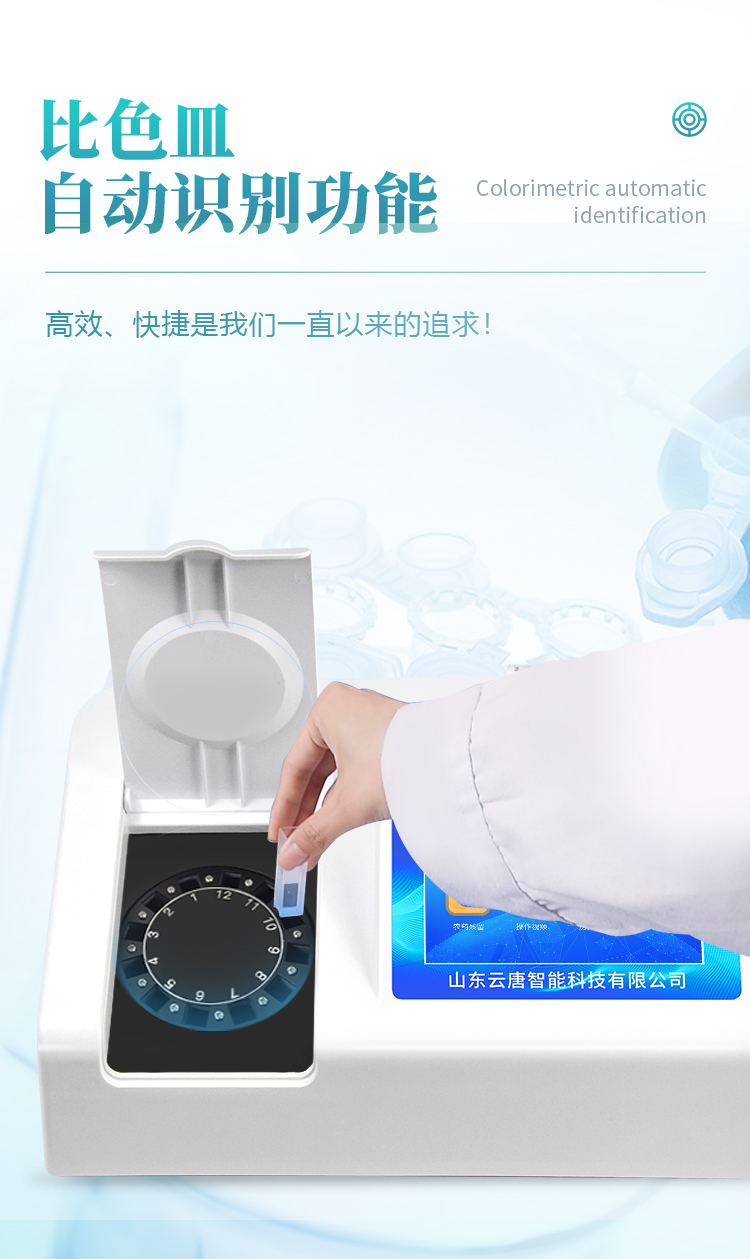 | 機器采用全新安卓智能系統(tǒng),主控芯片采用 ARM Cortex-A7,RK3288/4核處理器,主頻1.88Ghz,運轉(zhuǎn)速度更快速,穩(wěn)定性更強。 | 創(chuàng)新檢測模式: *儀器采用精密旋轉(zhuǎn)比色池設(shè)計,使用光源一致,可以解決各通道間由于光源誤差帶來的檢測結(jié)果誤差問題,檢測結(jié)果更加精準。 *儀器具有自動識別比色皿檢測功能,即:將樣品比色皿放入儀器后,點擊樣品檢測,儀器自動識別比色皿進行通道檢測。 | 供電方式:交直流兩用,直流 12V 供電,可連接車載電源,可配 6ah 大容量充電鋰電池,方便戶外流動測試。 | 顯示方式:7英寸液晶觸摸屏顯示,人性化中文操作界面,讀數(shù)直觀、簡單。 | 檢測通道:8個檢測通道,可以同時測試多個樣品,循環(huán)檢測,即放即檢,每個樣品由程序控制分別獨立工作,不會互相干擾。 | 高精光源系統(tǒng): ①①儀器光源采用進口超高亮發(fā)光二極管,光源亮度可以自動調(diào)節(jié)與校準 ②智能恒流穩(wěn)壓,光強自動校準,長時間連續(xù)工作光源無溫漂現(xiàn)象。 | 智能操作分析系統(tǒng): ①儀器具有100多種蔬菜名稱菜單庫,分類管理,并可按需添加或刪除、編輯蔬菜名稱;可在同一檢測界面自動對應(yīng)相關(guān)檢測通道一次性選擇1-24個樣品名稱,無需退出界面,節(jié)省操作時間。 ②內(nèi)置新國家限量標(biāo)準,與所測結(jié)果進行現(xiàn)場比對,并持續(xù)更新標(biāo)準。 | 完善的配套硬件: ①采用串口5v打印機,可選擇手動打印或者自動打印,三分鐘出打印結(jié)果,打印格式為檢測人姓名、吸光度差值、檢測時間、檢測機構(gòu)、樣品名稱及結(jié)果判定。 ②儀器具有無線上傳模塊,檢測結(jié)果可批量打印,批量上傳。 | 數(shù)據(jù)調(diào)用: ①儀器可存儲20萬條檢測結(jié)果, ②檢測結(jié)果為Excel表格,方便后期進行數(shù)據(jù)分析與匯總報告 ③儀器采用USB2.0接口設(shè)計,支持 U 盤存儲,方便數(shù)據(jù)的存貯和移動,并可隨時與計算機直接相連,實現(xiàn)數(shù)據(jù)查詢、瀏覽、分析、統(tǒng)計、打印等。 | 后期產(chǎn)品固件可升級。 | 安全證書,放心保障:儀器具有中國計量科學(xué)研究院校準證書,權(quán)威認證,使用放心。 |