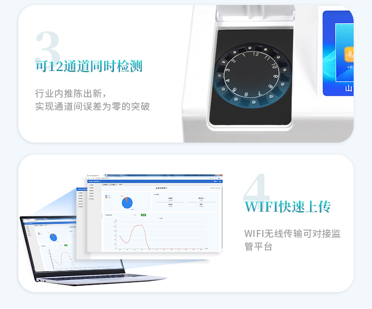 | 安卓智能操作系統(tǒng),采用更加**和人性化操作,儀器具有無線聯(lián)網(wǎng)上傳功能,快速上傳數(shù)據(jù),進行數(shù)據(jù)統(tǒng)計和分析。 | 智能化程度高,儀器具有自檢功能:具有開機自檢和調(diào)零功能,具有自動檢測重復(fù)性功能;同時,檢測完成可自動打印檢測報告和二維碼。手機掃碼可顯示出詳細檢測信息。 | 儀器帶有監(jiān)管平臺,數(shù)據(jù)可局域網(wǎng)和互聯(lián)網(wǎng)數(shù)據(jù)上傳,檢測結(jié)果直接傳至食品安全監(jiān)管平臺。進行區(qū)域食品安全監(jiān)管及大數(shù)據(jù)分析處理與數(shù)據(jù)統(tǒng)計,檢測區(qū)域食品安全長短期動態(tài),達到食品安全問題預(yù)估、預(yù)警 。 | 樣品處理簡單省力,整體操作快速、安全、便捷。 | 儀器具有自身保護功能,可設(shè)置用戶名及密碼,防止非工作人員操作等。 | 內(nèi)置強大的數(shù)據(jù)庫,可在儀器上直接選擇樣品名稱、檢測指標(biāo)、送檢單位等信息,也可在儀器上直接編輯錄入樣品名稱、檢測指標(biāo)、送檢單位等信息并保存進樣品數(shù)據(jù)庫,方便后期操作調(diào)取使用。 | 儀器具有重新校準、鎖定、恢復(fù)出廠設(shè)置功能。 |