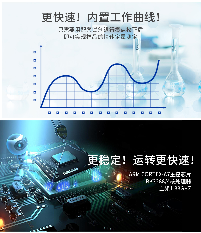 儀器采用臺式一體化系統(tǒng)檢測技術(shù),將分光光度模塊、新型農(nóng)殘檢測模塊、數(shù)字化管理模塊、無線通訊模塊高度集成于一體,支持檢測200種食品安全檢測項目,同時預(yù)留升級檢測方法。儀器檢測模塊標準化、智能化,可隨意自由組合。檢測箱體內(nèi)置多個標準檢測單元,檢測模塊可以調(diào)整配置。儀器采用全新安卓智能系統(tǒng),主控芯片采用 ARM Cortex-A7,RK3288/4核處理器,10.1寸高清液晶觸摸豎屏,更加**的UI交互界面,運轉(zhuǎn)快捷;儀器配備無線通信模塊: 4G(APN)通訊模塊、Wifi模塊,藍牙傳輸,同時具有雙USB接口以及RJ45接口能以多種方式實現(xiàn)數(shù)據(jù)保存和數(shù)據(jù)傳輸功能。創(chuàng)新檢測模式:★檢測通道:≥12通道;采用精密旋轉(zhuǎn)比色池設(shè)計,使用同芯片同光源校準精度,解決不同光源之間的誤差值。1-12通道間誤差0.1%。(***:**202022821055.2)★儀器具有自動識別比色皿檢測功能,即:將樣品比色皿放入儀器后,點擊樣品檢測,儀器自動識別比色皿進行通道檢測。進口高精光源:高精度進口四波長冷光源,通道配置 410、520、590、630nm 波長光源,一個光源芯片驅(qū)動一個光源,誤差極小,每臺設(shè)備單獨**校準光源,**比對,同時參照四種不同波段光源全方位覆蓋市面上99%的農(nóng)殘食品項目檢測。智能化操作系統(tǒng):便捷操作系統(tǒng):設(shè)備檢測時可在同一檢測界面自動對應(yīng)相關(guān)檢測通道一次性選擇1-12個樣品名稱,無須退出界面,節(jié)省操作時間。數(shù)據(jù)集成系統(tǒng):設(shè)備首頁自動統(tǒng)計檢測數(shù)據(jù)包含:周檢測數(shù)據(jù)、月檢測數(shù)據(jù),全部檢測總數(shù)量,均包含檢測總數(shù),合格數(shù),不合格數(shù),以及相關(guān)柱形分析圖,對各項檢測數(shù)據(jù)清晰掌握,無需電腦查詢,更加快捷直觀。項目預(yù)設(shè)系統(tǒng):支持添加單個及多個相同或不相同的任務(wù)預(yù)設(shè),一鍵快速調(diào)取,每一個任務(wù)分別可以設(shè)置不同的樣品、批次、編號、來源、備注、抽樣信息、檢測信息、受檢信息、復(fù)核信息等更多信息。無縫鏈接平臺和APP實時查看下發(fā)任務(wù)。數(shù)據(jù)監(jiān)管系統(tǒng):同步對接監(jiān)管平臺,數(shù)據(jù)可局域網(wǎng)和互聯(lián)網(wǎng)數(shù)據(jù)上傳,檢測結(jié)果可選擇直接傳至食品安全監(jiān)管平臺。集成OSS輸出存儲服務(wù)、區(qū)分設(shè)備定向管理應(yīng)用,進行區(qū)域食品安全監(jiān)管及大數(shù)據(jù)分析處理與數(shù)據(jù)統(tǒng)計,檢測區(qū)域食品安全長短期動態(tài),達到食品安全問題預(yù)估、預(yù)警。自定義打印系統(tǒng):內(nèi)置全新打印系統(tǒng),新創(chuàng)自定義打印方式,可按需靈活設(shè)置開啟或關(guān)閉:產(chǎn)品合格證(國家農(nóng)業(yè)部標準要求),二維碼,抽樣信息、檢測信息,受檢信息、復(fù)核信息、抽樣日期、檢測日期等信息的打印。系統(tǒng)遠程更新功能:可定向分客戶分儀器更新系統(tǒng),按照不同客戶后期實際需求添加項目,無需機器返廠,即可遠程實時升級全新系統(tǒng),節(jié)省時間成本及避免運輸造成設(shè)備損壞。儀器主機采用一體化防水、抗壓、防撞擊、防腐蝕箱體設(shè)計,同時配備交直流供電,可連接車載電源,可選配大容量充電鋰電池,滿足現(xiàn)場野外檢測需求。安全證書,放心保障:儀器具有中國計量科學(xué)研究院校準證書,權(quán)威認證。