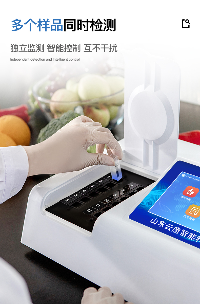 儀器采用臺式一體化系統(tǒng)檢測技術(shù),將分光光度模塊、新型農(nóng)殘檢測模塊、數(shù)字化管理模塊、無線通訊模塊高度集成于一體,支持檢測200種食品安全檢測項目,同時預(yù)留升級檢測方法。儀器檢測模塊標(biāo)準(zhǔn)化、智能化,可隨意自由組合。檢測箱體內(nèi)置多個標(biāo)準(zhǔn)檢測單元,檢測模塊可以調(diào)整配置。儀器采用全新安卓智能系統(tǒng),主控芯片采用 ARM Cortex-A7,RK3288/4核處理器,10.1寸高清液晶觸摸豎屏,更加**的UI交互界面,運轉(zhuǎn)快捷;儀器配備無線通信模塊: 4G(APN)通訊模塊、Wifi模塊,藍牙傳輸,同時具有雙USB接口以及RJ45接口能以多種方式實現(xiàn)數(shù)據(jù)保存和數(shù)據(jù)傳輸功能。創(chuàng)新檢測模式:★檢測通道:≥12通道;采用精密旋轉(zhuǎn)比色池設(shè)計,使用同芯片同光源校準(zhǔn)精度,解決不同光源之間的誤差值。1-12通道間誤差0.1%。(***:**202022821055.2)★儀器具有自動識別比色皿檢測功能,即:將樣品比色皿放入儀器后,點擊樣品檢測,儀器自動識別比色皿進行通道檢測。進口高精光源:高精度進口四波長冷光源,通道配置 410、520、590、630nm 波長光源,一個光源芯片驅(qū)動一個光源,誤差極小,每臺設(shè)備單獨**校準(zhǔn)光源,**比對,同時參照四種不同波段光源全方位覆蓋市面上99%的農(nóng)殘食品項目檢測。智能化操作系統(tǒng):便捷操作系統(tǒng):設(shè)備檢測時可在同一檢測界面自動對應(yīng)相關(guān)檢測通道一次性選擇1-12個樣品名稱,無須退出界面,節(jié)省操作時間。數(shù)據(jù)集成系統(tǒng):設(shè)備首頁自動統(tǒng)計檢測數(shù)據(jù)包含:周檢測數(shù)據(jù)、月檢測數(shù)據(jù),全部檢測總數(shù)量,均包含檢測總數(shù),合格數(shù),不合格數(shù),以及相關(guān)柱形分析圖,對各項檢測數(shù)據(jù)清晰掌握,無需電腦查詢,更加快捷直觀。項目預(yù)設(shè)系統(tǒng):支持添加單個及多個相同或不相同的任務(wù)預(yù)設(shè),一鍵快速調(diào)取,每一個任務(wù)分別可以設(shè)置不同的樣品、批次、編號、來源、備注、抽樣信息、檢測信息、受檢信息、復(fù)核信息等更多信息。無縫鏈接平臺和APP實時查看下發(fā)任務(wù)。數(shù)據(jù)監(jiān)管系統(tǒng):同步對接監(jiān)管平臺,數(shù)據(jù)可局域網(wǎng)和互聯(lián)網(wǎng)數(shù)據(jù)上傳,檢測結(jié)果可選擇直接傳至食品安全監(jiān)管平臺。集成OSS輸出存儲服務(wù)、區(qū)分設(shè)備定向管理應(yīng)用,進行區(qū)域食品安全監(jiān)管及大數(shù)據(jù)分析處理與數(shù)據(jù)統(tǒng)計,檢測區(qū)域食品安全長短期動態(tài),達到食品安全問題預(yù)估、預(yù)警。自定義打印系統(tǒng):內(nèi)置全新打印系統(tǒng),新創(chuàng)自定義打印方式,可按需靈活設(shè)置開啟或關(guān)閉:產(chǎn)品合格證(國家農(nóng)業(yè)部標(biāo)準(zhǔn)要求),二維碼,抽樣信息、檢測信息,受檢信息、復(fù)核信息、抽樣日期、檢測日期等信息的打印。系統(tǒng)遠程更新功能:可定向分客戶分儀器更新系統(tǒng),按照不同客戶后期實際需求添加項目,無需機器返廠,即可遠程實時升級全新系統(tǒng),節(jié)省時間成本及避免運輸造成設(shè)備損壞。儀器主機采用一體化防水、抗壓、防撞擊、防腐蝕箱體設(shè)計,同時配備交直流供電,可連接車載電源,可選配大容量充電鋰電池,滿足現(xiàn)場野外檢測需求。安全證書,放心保障:儀器具有中國計量科學(xué)研究院校準(zhǔn)證書,權(quán)威認證。