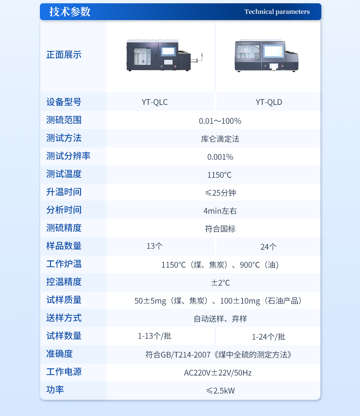 | 測硫范圍:0.01~100% | 測試方法:庫侖滴定法 | 測試分辨率:0.001% | 測試溫度:1150℃ | 升溫時間:≤25分鐘 | 分析時間:4min左右 | 測硫精度:符合國標(biāo) | 樣品數(shù)量:24個 | 工作爐溫:1150℃(煤、焦炭)、900℃(油) | 控溫精度:±2℃ | 試樣質(zhì)量:50±5mg(煤、焦炭)、100±10mg(石油產(chǎn)品) | 送樣方式:自動送樣、棄樣 | 試樣數(shù)量:1-24個/批,試驗過程可添加/替換試樣 | 準(zhǔn)確度:符合GB/T214-2007《煤中全硫的測定方法》 | 工作電源:AC220V±22V/50Hz 功率:≤2.5kW |